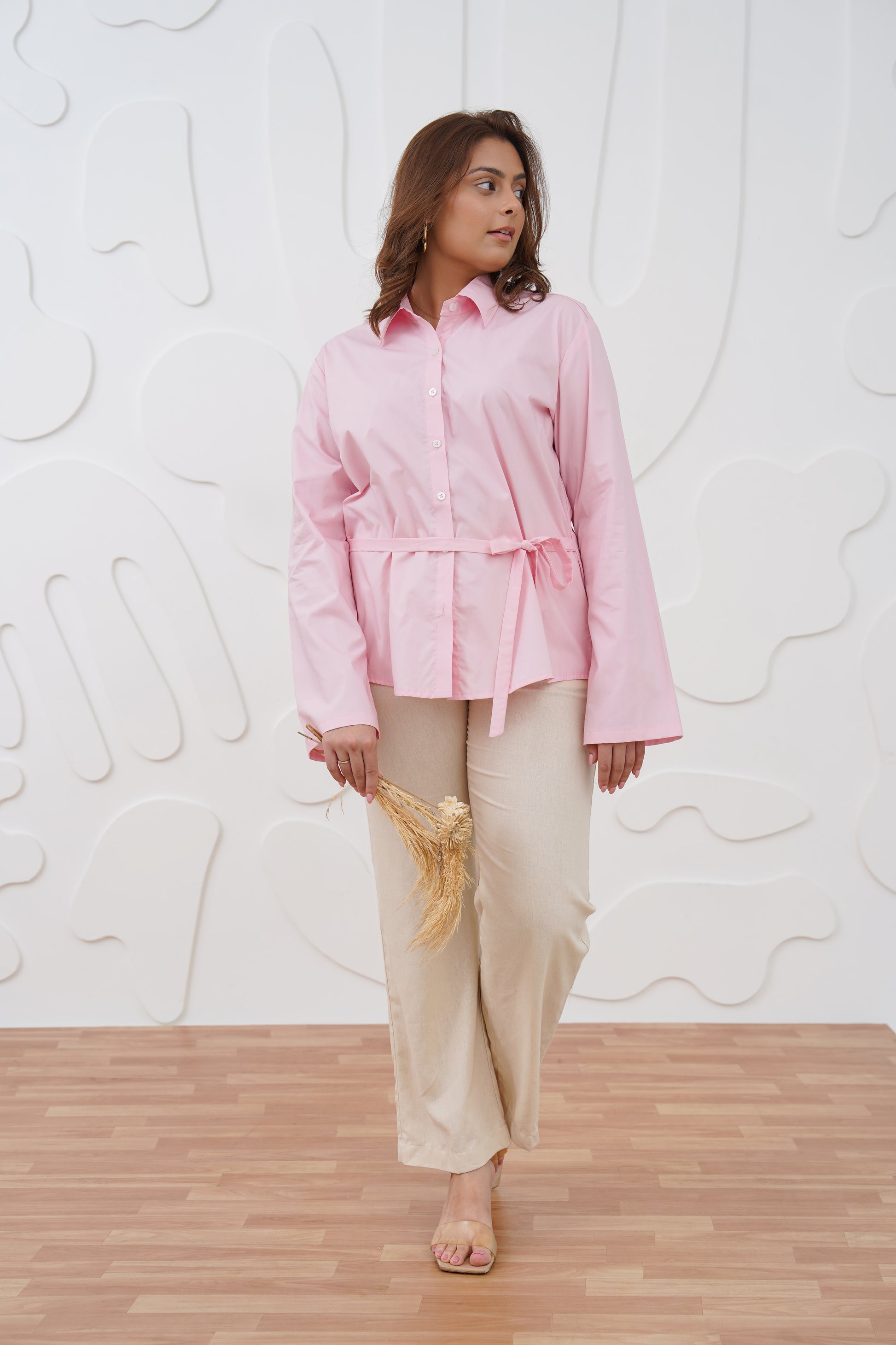 The Belle Shirt combines classic elegance with a modern twist, featuring a delicate waist tie for a flattering silhouette. Whether for work or weekend brunch, this shirt adds a touch of effortless sophistication to any outfit.