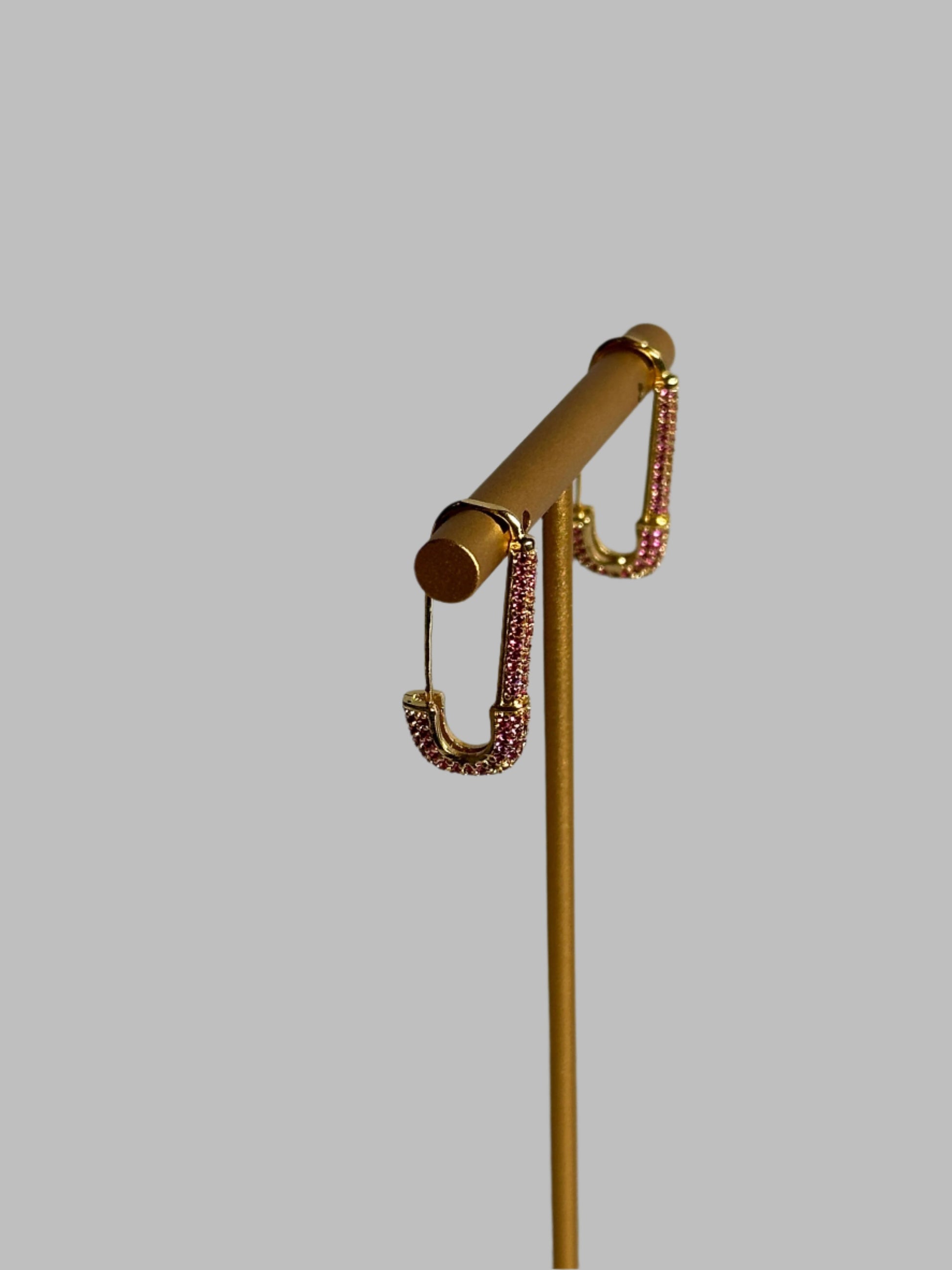 These unique earrings feature a sleek safety pin design adorned with dazzling rubies, creating a striking fusion of modern minimalism and timeless luxury.