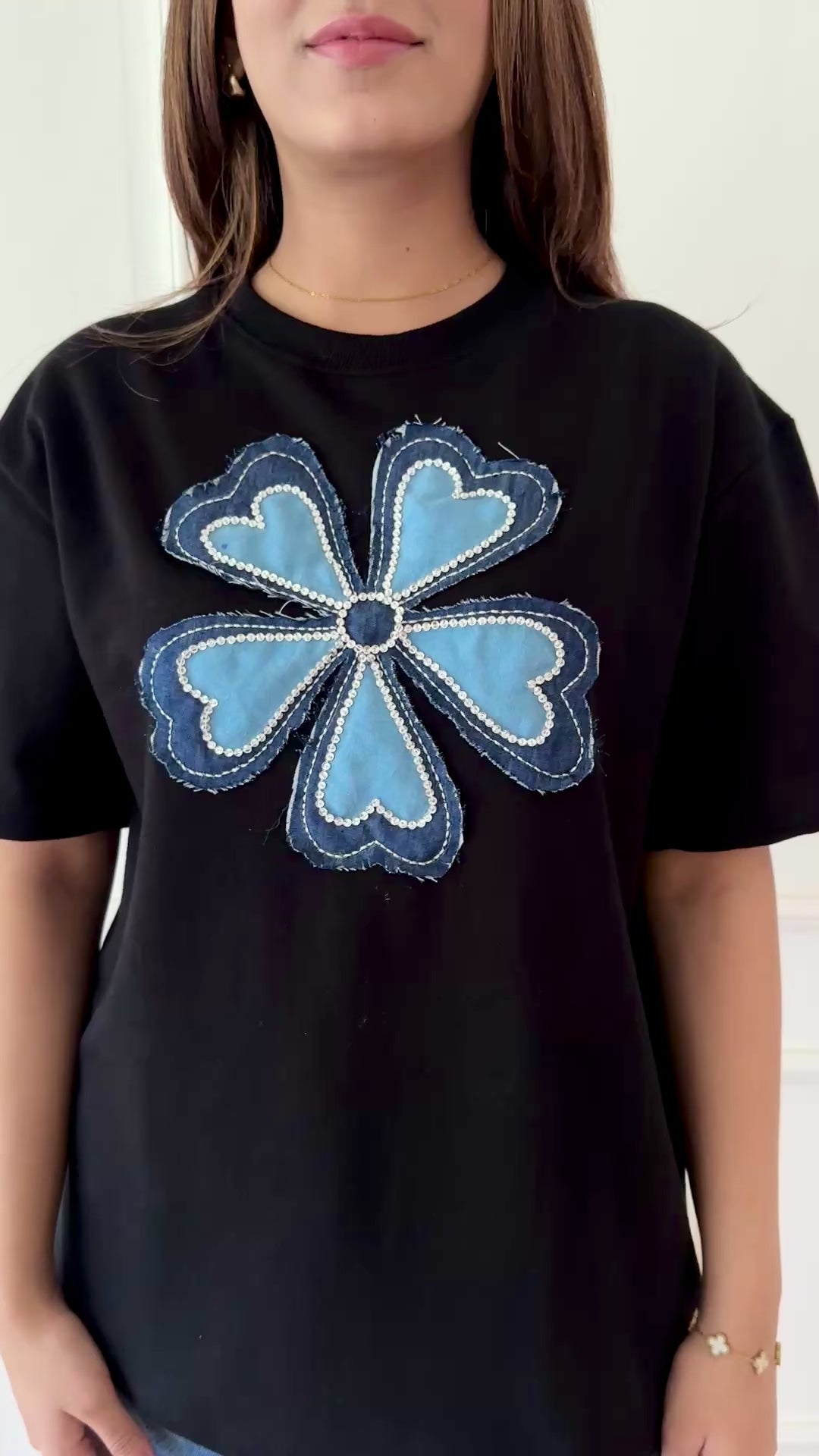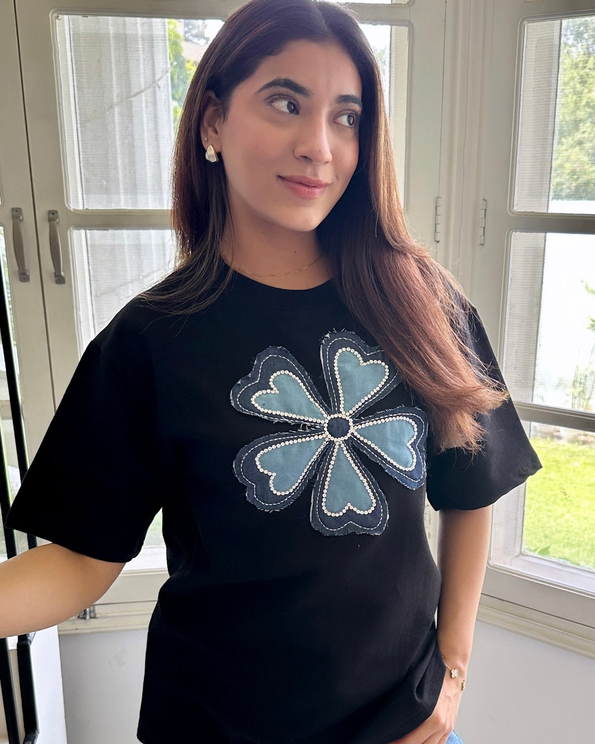 Bold, sleek, and unapologetically luxe, the black Lucky Girl tee is for the girl who owns every room she walks into. With the striking “Lucky Girl” graphic popping against the deep black base, it’s a statement of confidence and effortless cool.