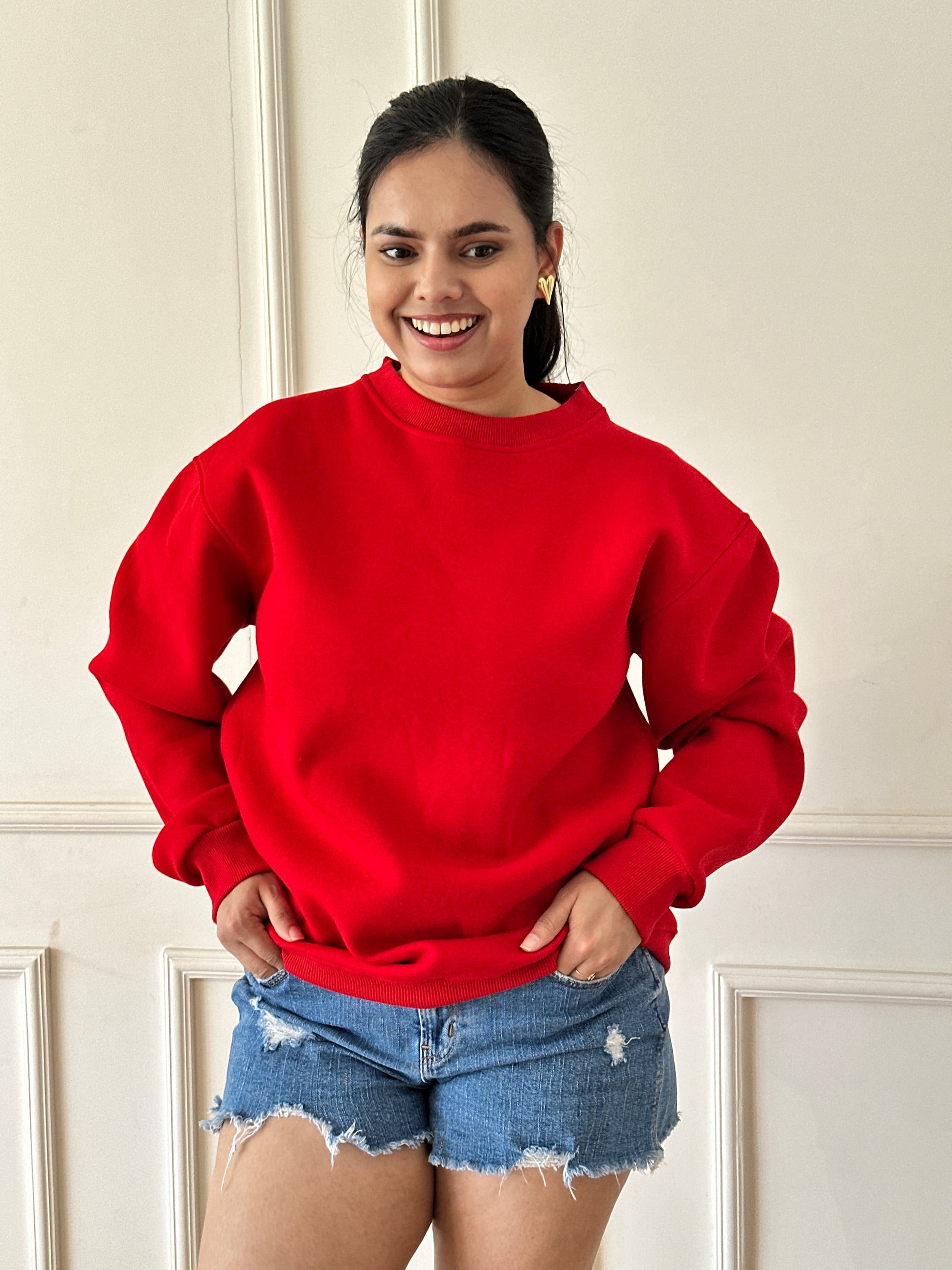 This vibrant red sweatshirt, splashed with sparkling silver detailing, is made for the girl who walks in with confidence, charm, and just the right amount of drama. Whether you’re making an entrance or simply feeling extra cute on a regular day, this piece brings attitude in the best way.