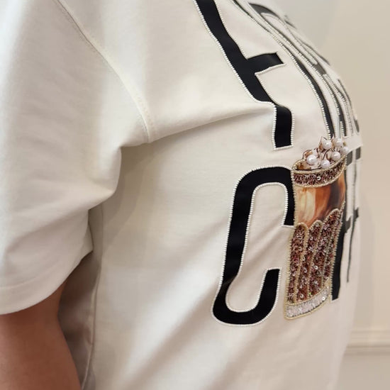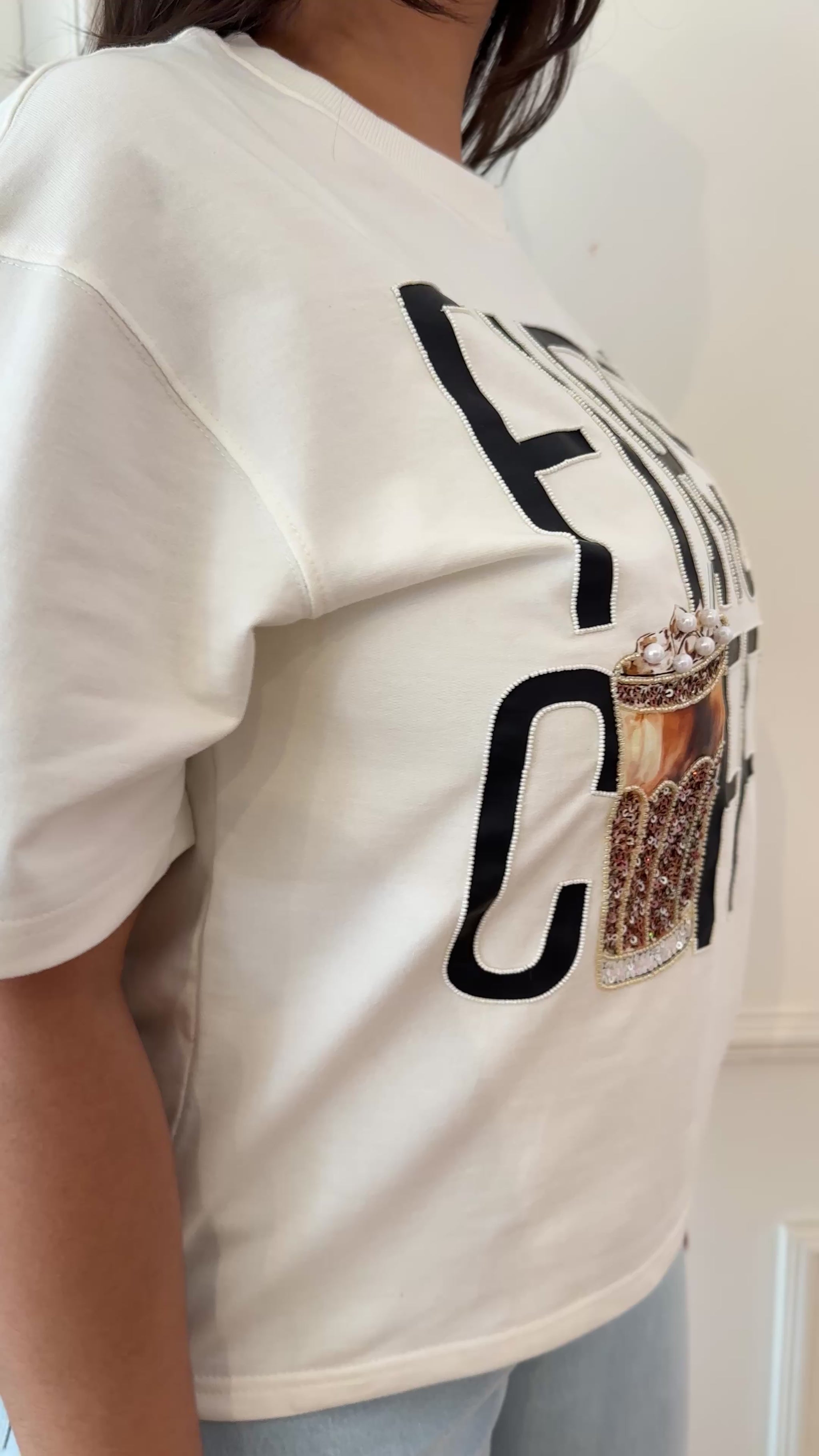 Soft, breathable, and stitched with caffeine-fueled sass, this embroidered essential is for the girl who knows priorities — and coffee always comes first.