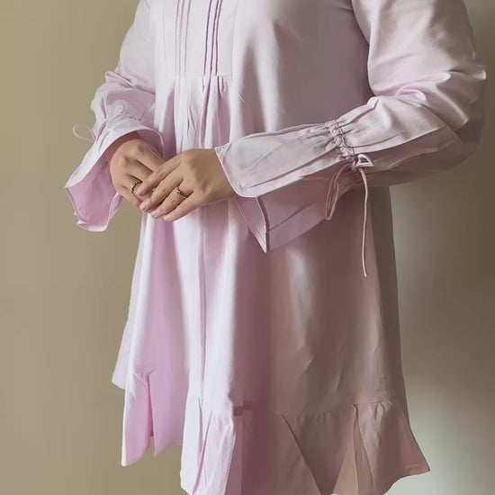 Soft, breezy, and here to steal hearts. This light pink linen dress is your perfect blend of sweet and effortless. Designed with delicate pintuck detailing and dreamy flared sleeves, this piece is all about that “barely trying, but totally stunning” energy. It’s picnic, beach day, or coffee run ready, wherever you want to take it.