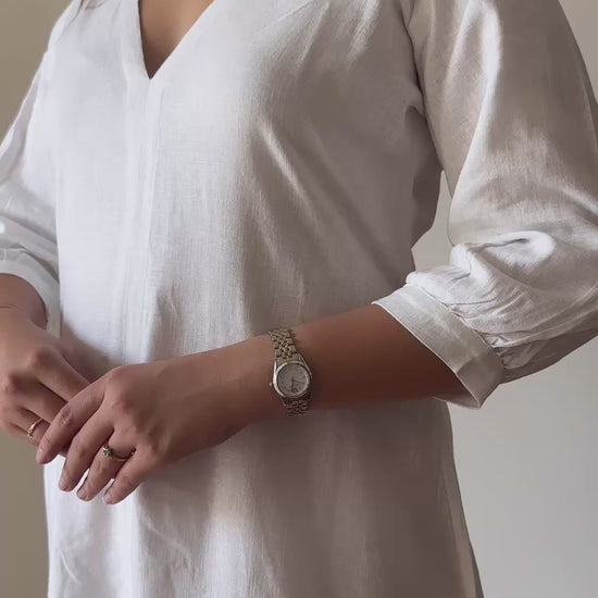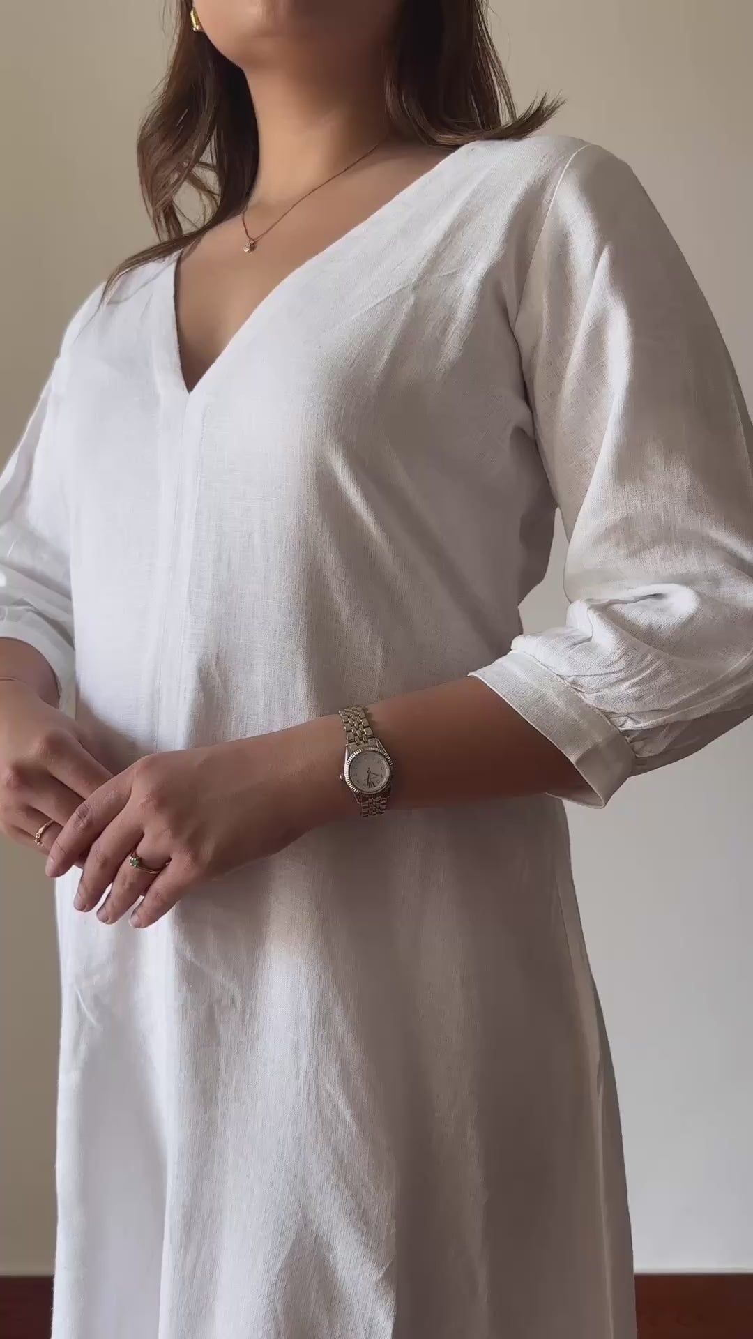 The White Linen Dress is your perfect go-to for those easy, breezy days when comfort and style need to walk hand-in-hand. Featuring a soft V-neckline, delicate tie-back detail, and a flattering flowy silhouette, this dress is made to move with you. Whether you’re brunching, beach-hopping, or just chilling, this one’s got your back.