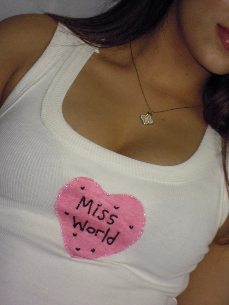 The Miss World Tank features a flattering sculpted fit with a soft pink heart detail that brings all the girly, main character energy. It’s playful, a little flirty, and made for days when you are the moment—no crown needed.