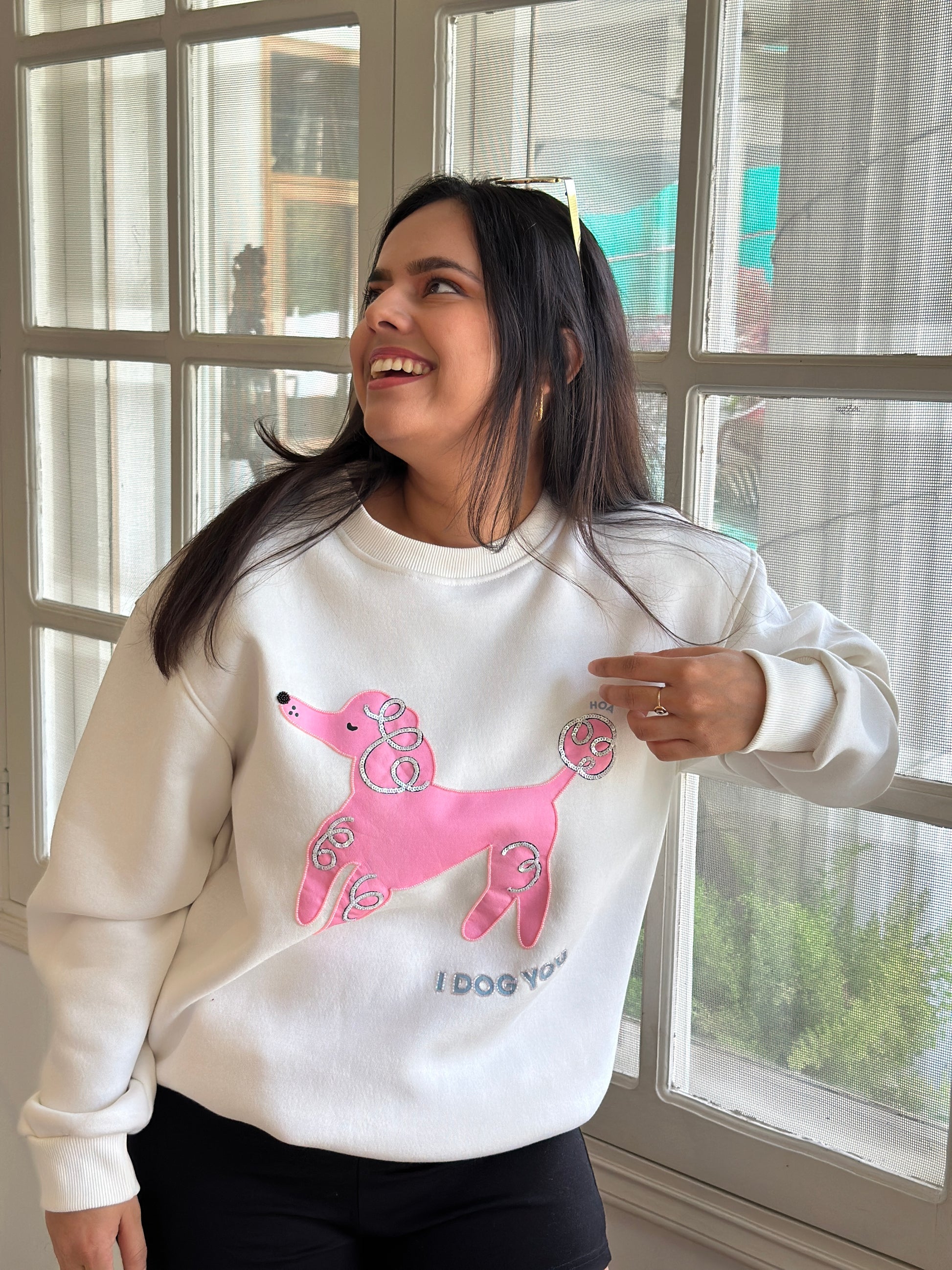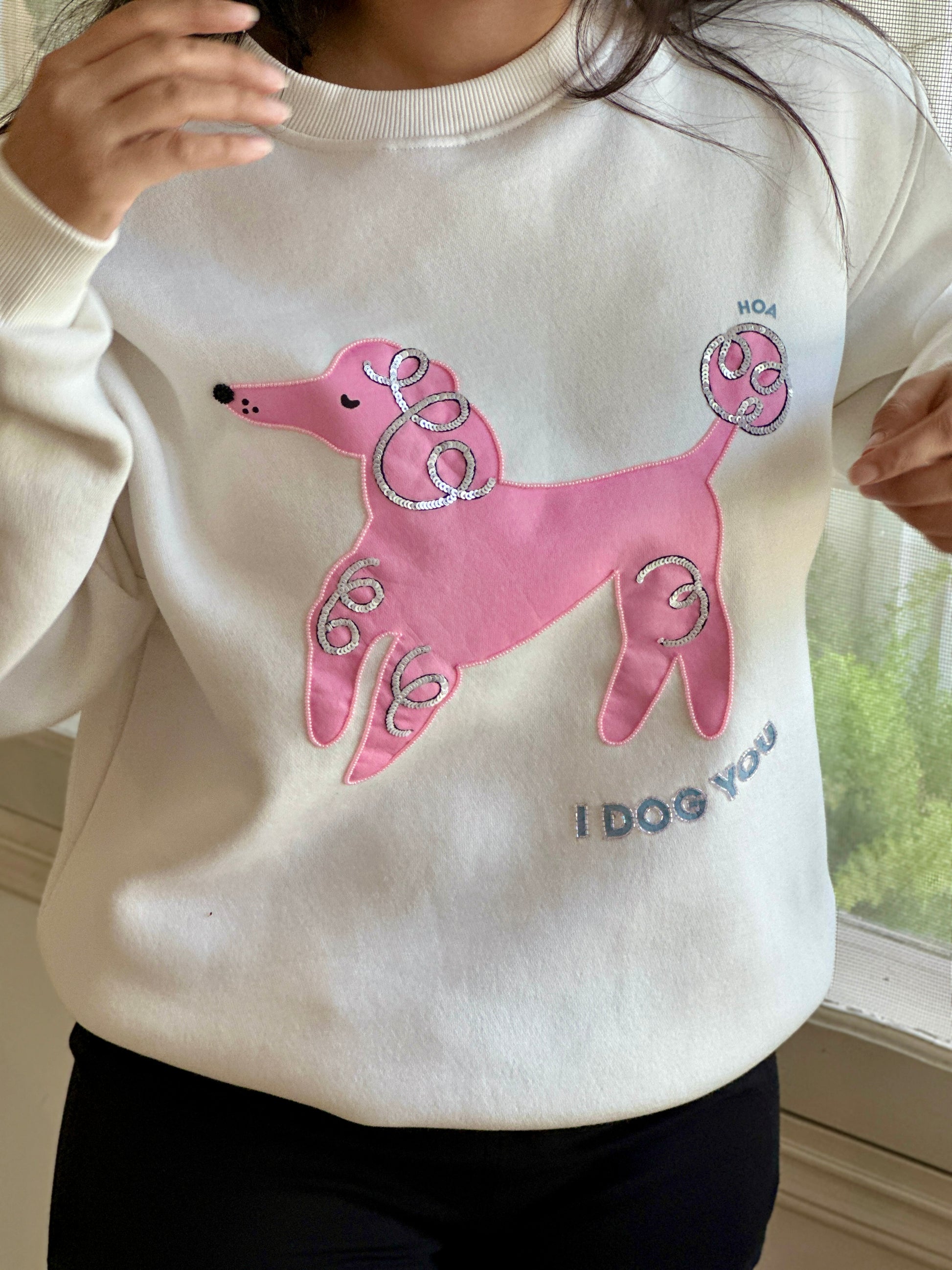 A statement-making sweatshirt that blends cozy comfort with playful charm — featuring our adorable pink dog graphic and the cheeky text ‘I Dog You’. It’s the perfect mix of cute and cool, designed for days when you just want to throw on something effortlessly fun and still look put-together 🐾💖