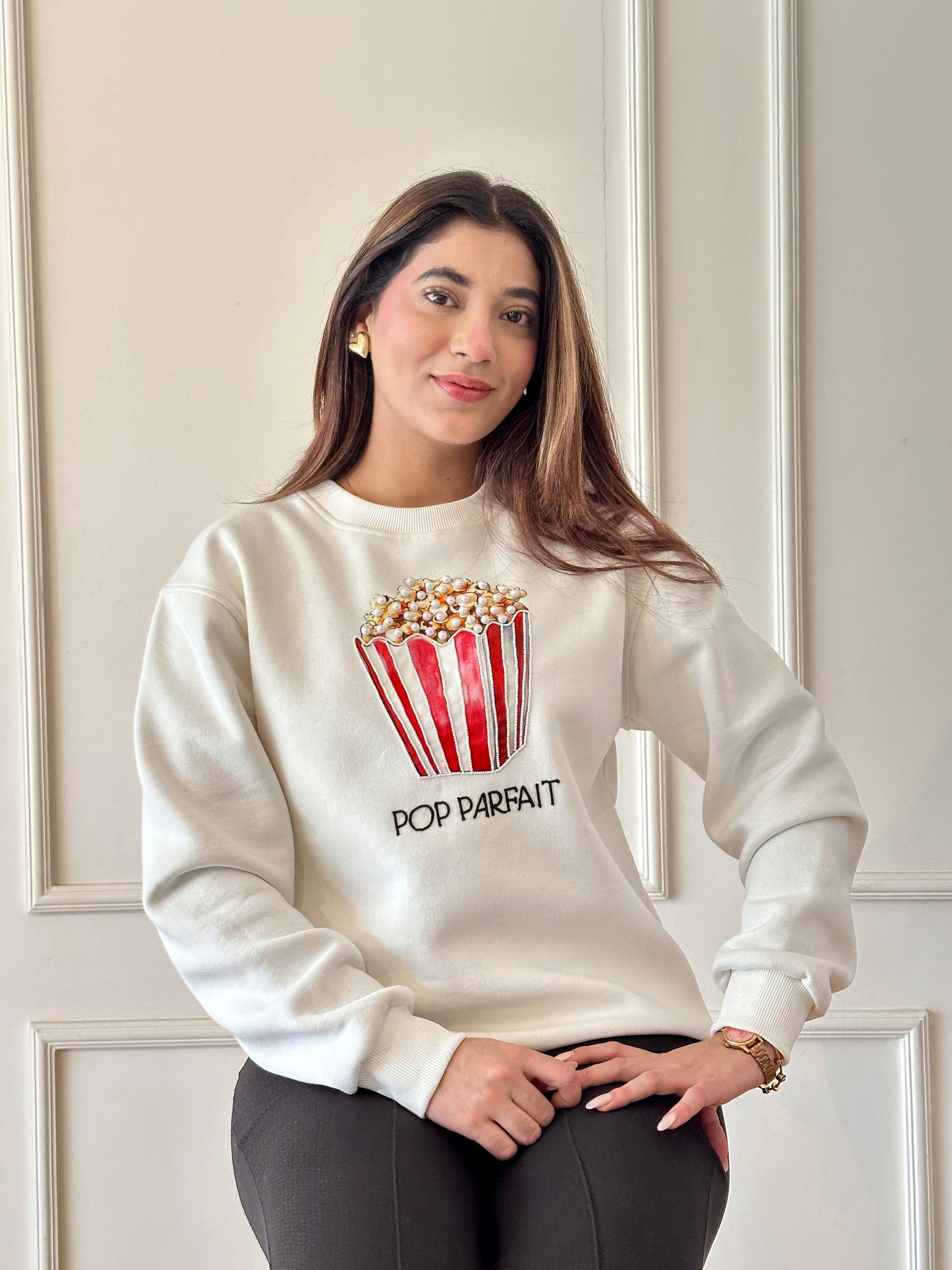 Say hello to the Pop Parfait sweatshirt β a luxe twist on your classic comfy fit. Featuring a statement popcorn graphic hand-detailed with pearls and embellishments, this piece brings just the right dose of glam to your everyday. Cozy, cute, and unapologetically extra β just how we like it ππΏ