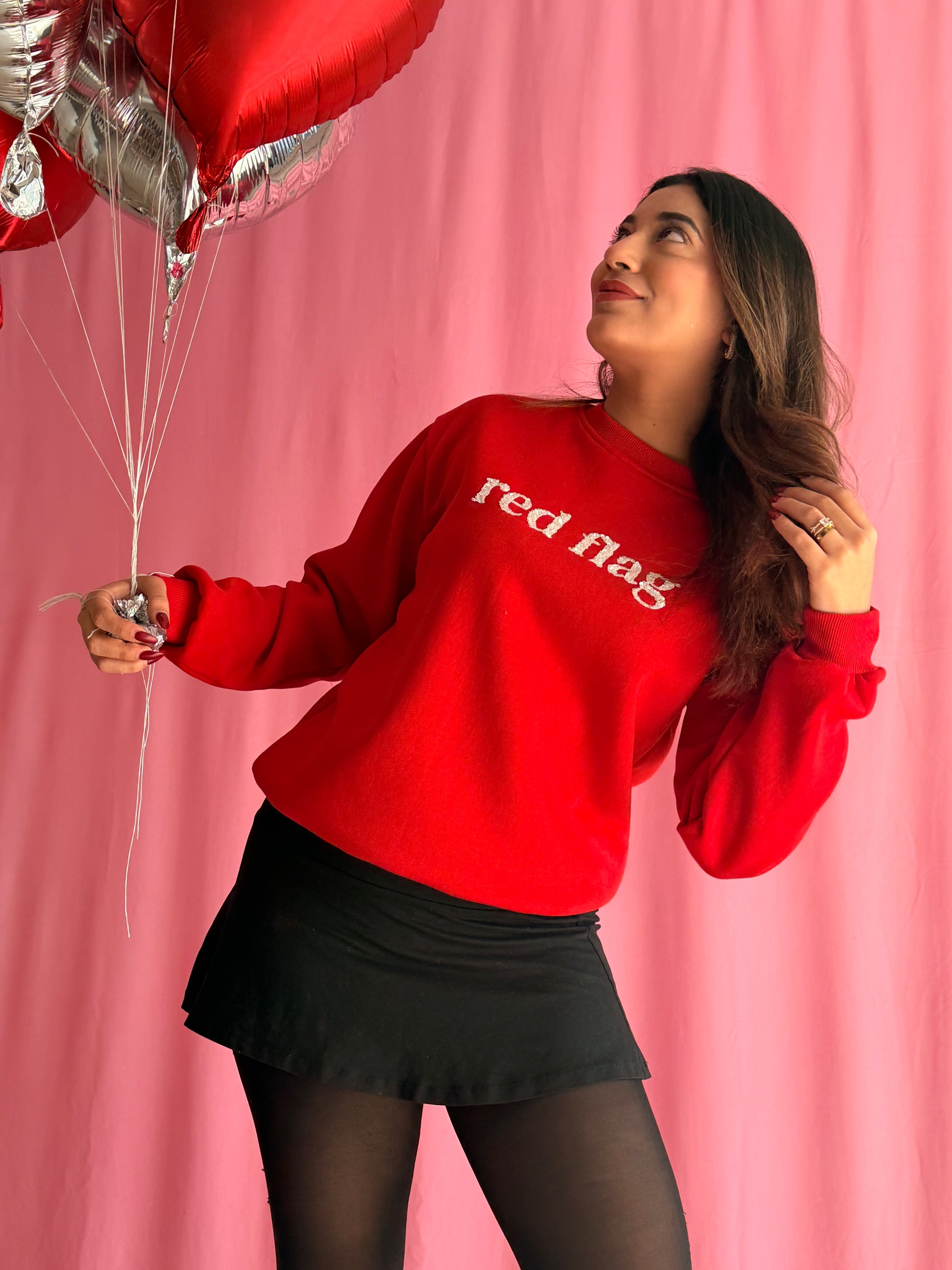 For the girls who know they might be the problem… but at least they look good doing it. The Red Flag Sweatshirt is hand-embroidered with sparkle letters for that subtle toxic-but-cute vibe every Valentine season deserves.