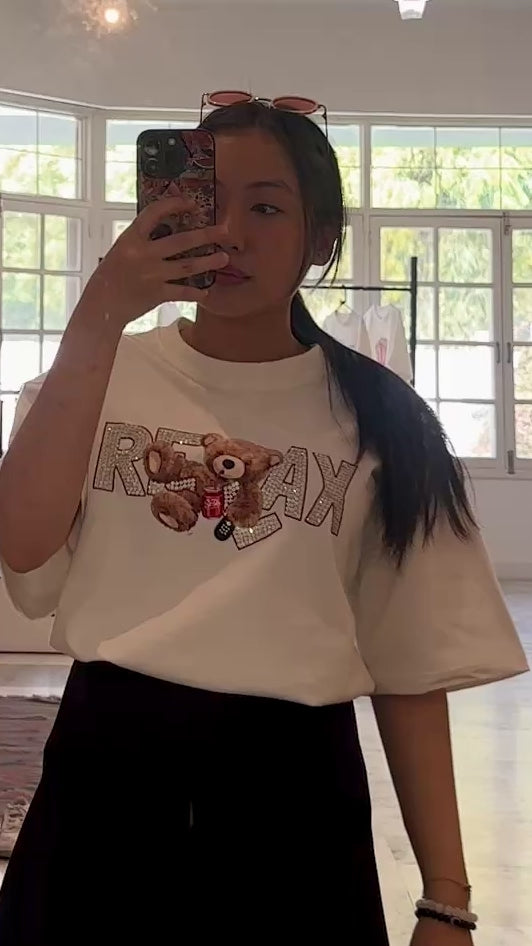 Take it easy in this ultra-soft tee, because we know you deserve some chill time. Featuring an adorable teddy graphic, this oversized fit is perfect for lounging or running errands in style. Whether you're curled up with a book or grabbing coffee, this tee is your go-to for ultimate comfort and laid-back vibes. Paired with the softest cotton, it’s like a hug in tee form.